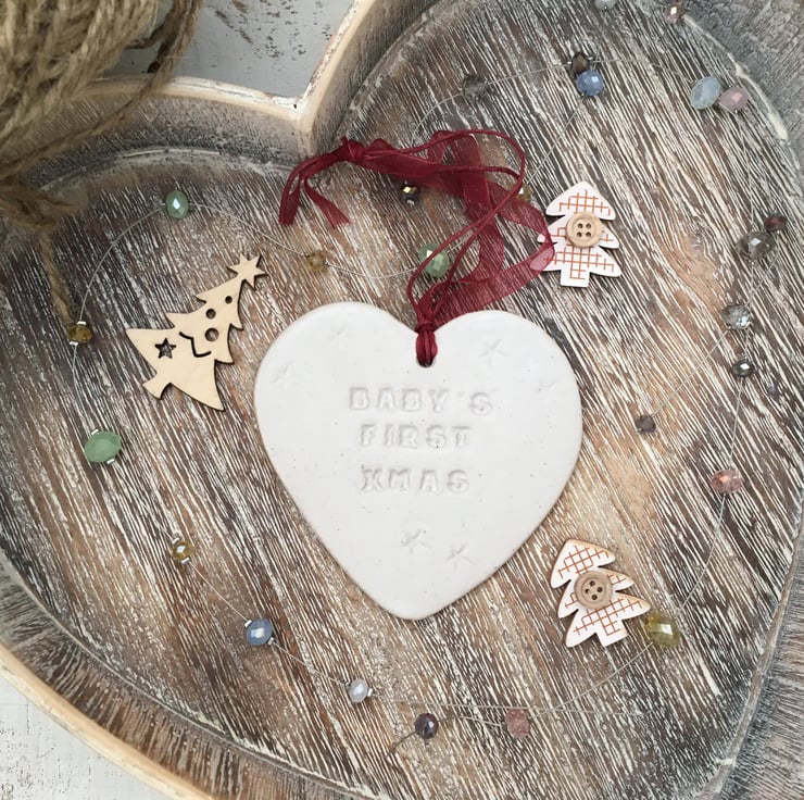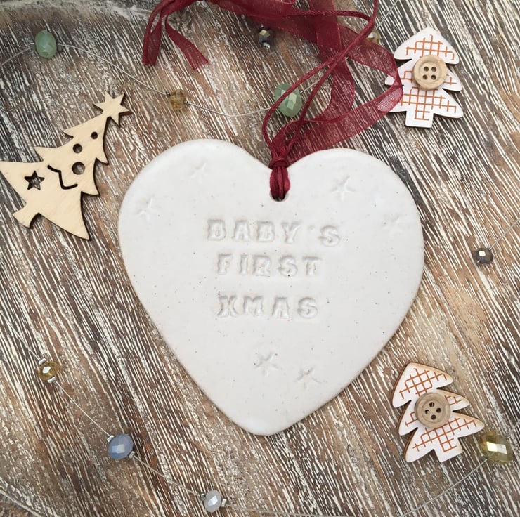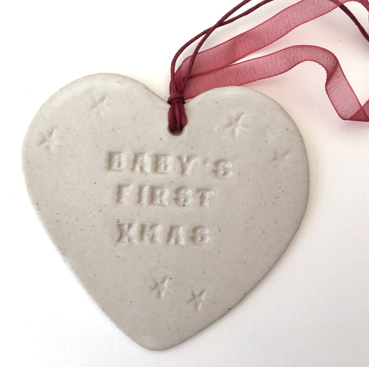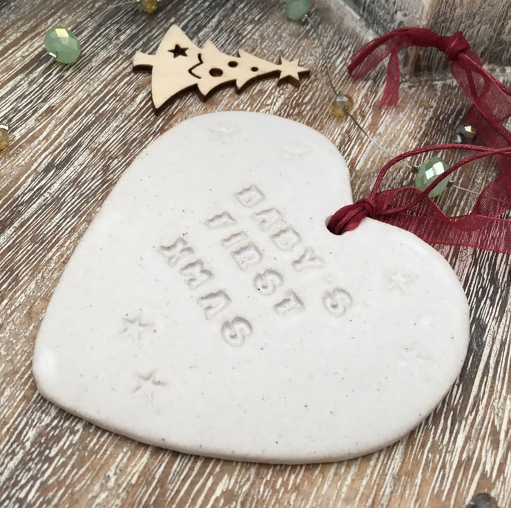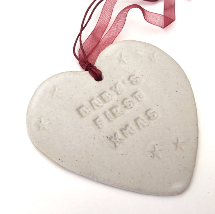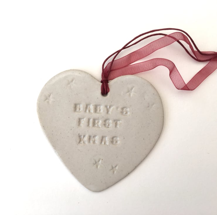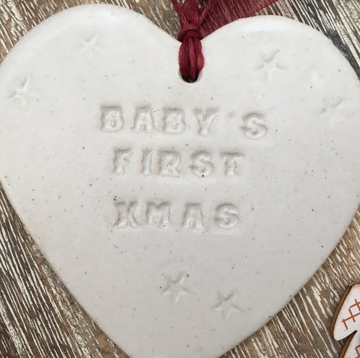 Ceramic heart, Baby's first Christmas Loveheart hanger, handmade pottery