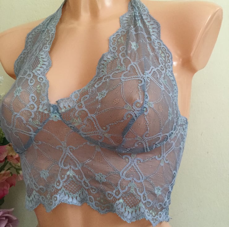 Beautiful soft lace halter bralette .with adjustable spaghetti straps.