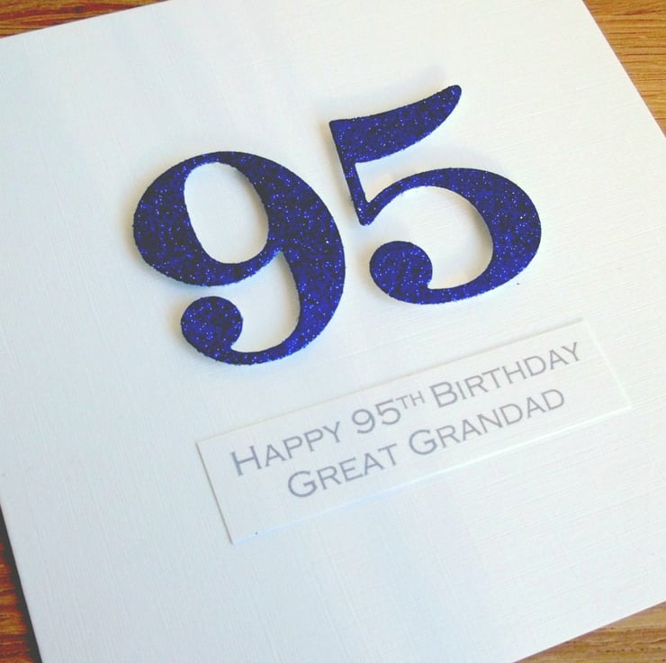 The printed message can be personalised to any message you require. The large sparkly numbers can be supplied in a range of colours The card shown uses red glitter card. Please choose the colour you would like as you order.