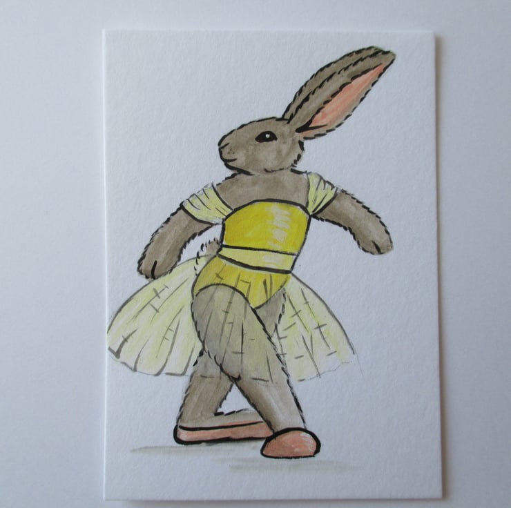 ACEO Bunny Rabbit Ballet Dancing Dancer Miniature Original Painting Picture