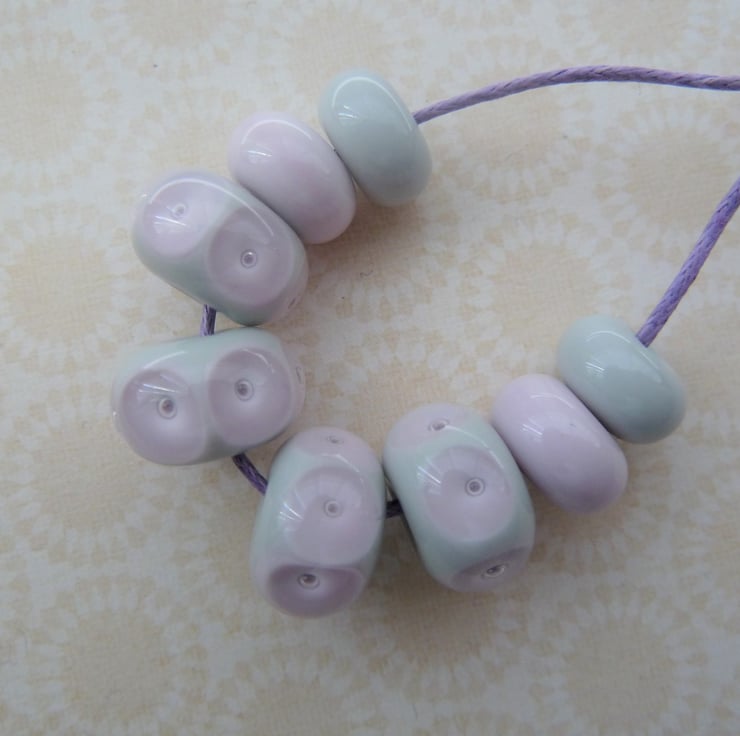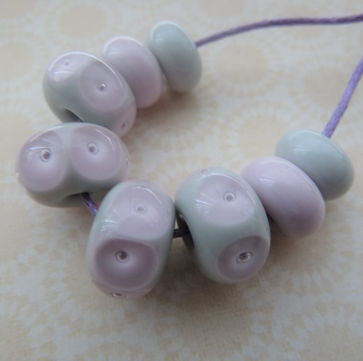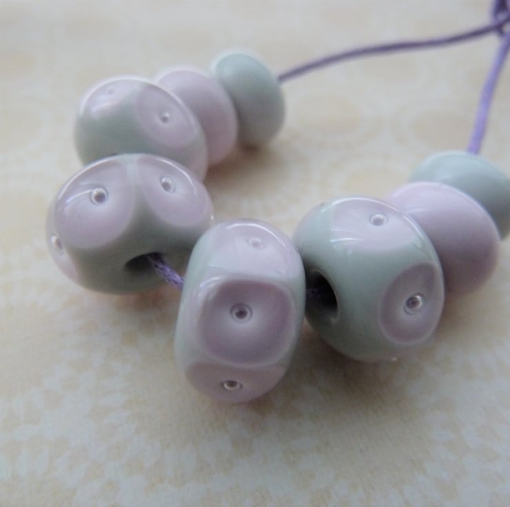 A set of 8 lampwork glass beads which features 4 spot beads and 4 spacers.