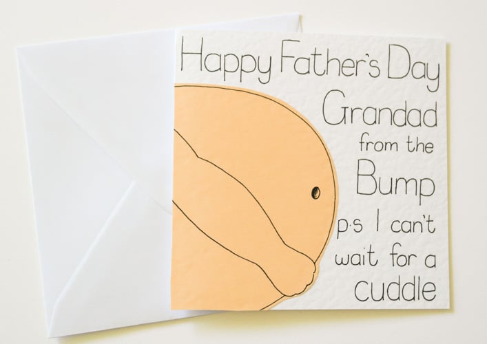 A unique handmade Father's Day card to send to a Grandad to be from the Bump. Make Father's Day extra special for a Granddad to be.