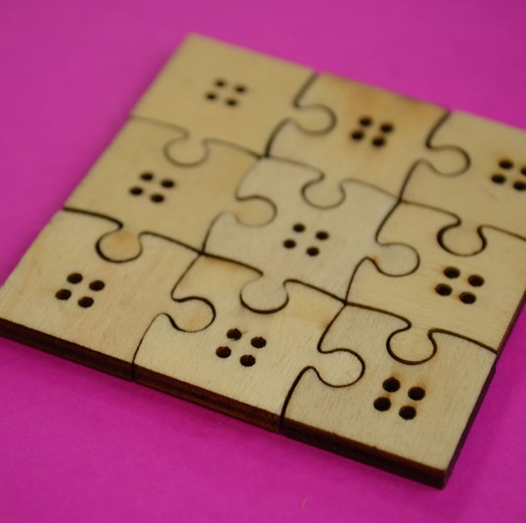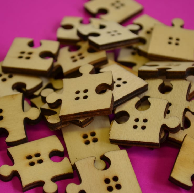 Funky wooden buttons in the shape of jigsaw pieces.