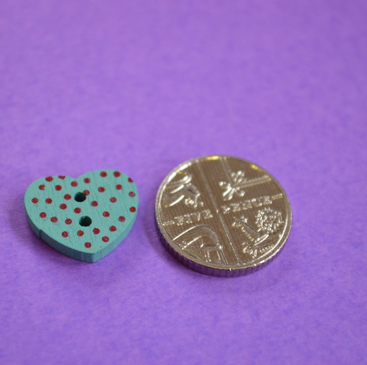 Little Wooden Dotty Heart Buttons Aqua 10pk Spotty Dot Colourful 13x15mm (WH5)