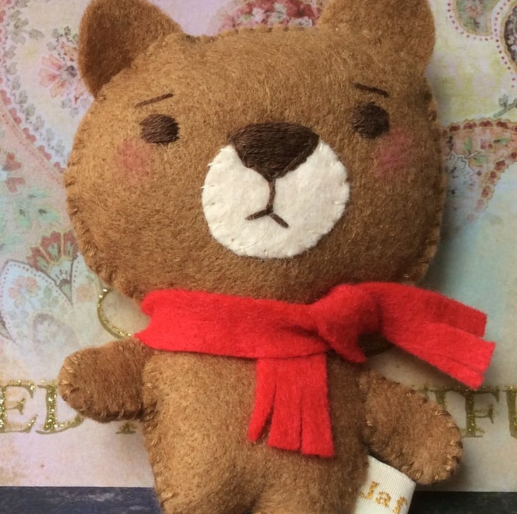 Cute Hand Stitched Teddy Bear made from 100% pure Felt, with hand stitched features.