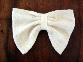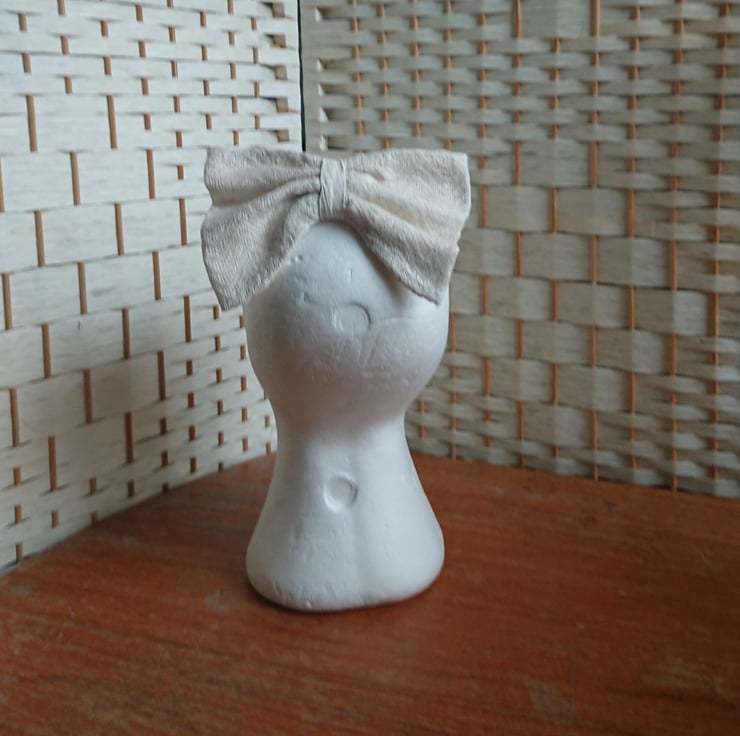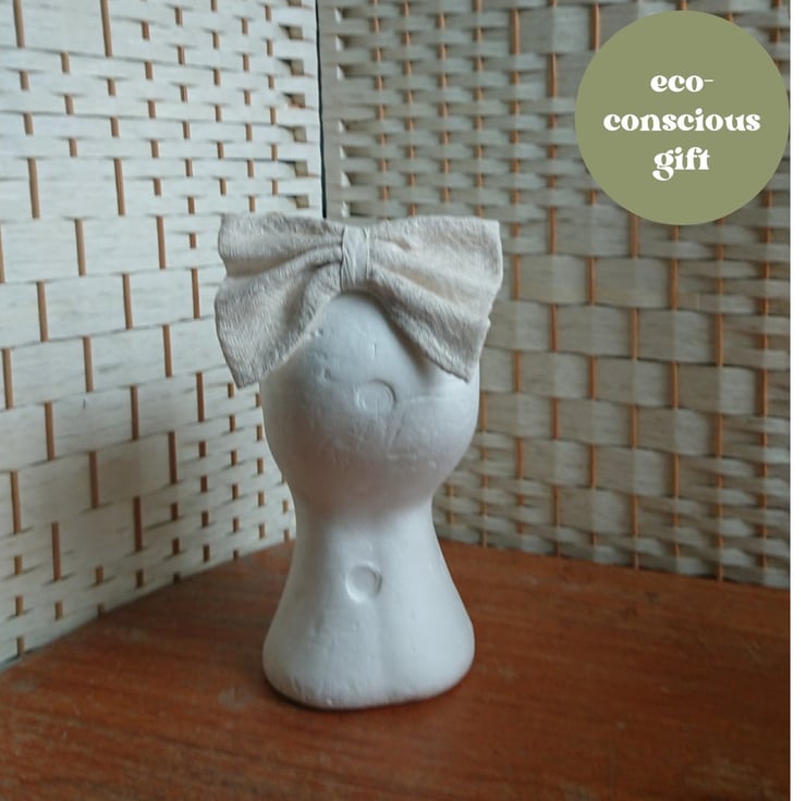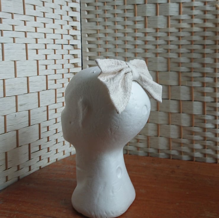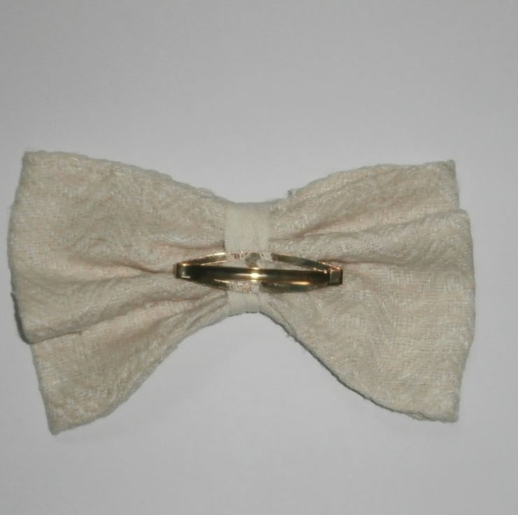 A rich ivory silk handmade hair bow which is made from Eri silk. This is a quite rare Indian wild silk. This dark ivory fabric has a soft feel to it and this particular weave is textured, so it looks quite ethnic and is quite eco - see inspiration.