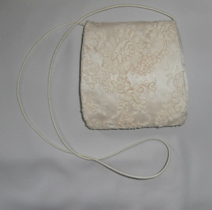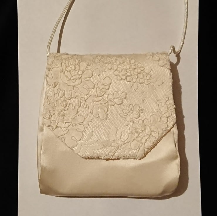 This is a one-off bride bag. The lace used to make this silk pochette is not now available but I can make other bags of a similar design using best quality silks and French laces which I order from trade suppliers in the UK.