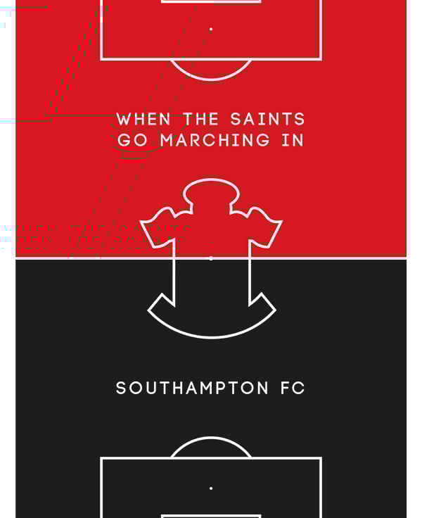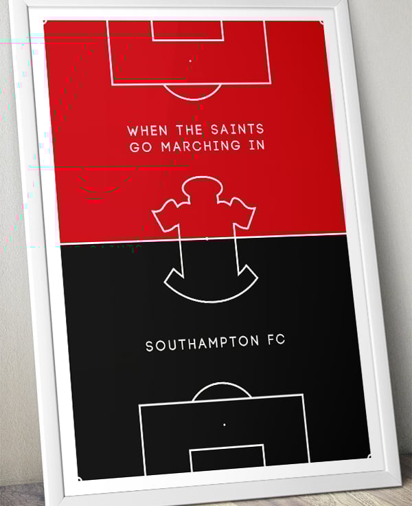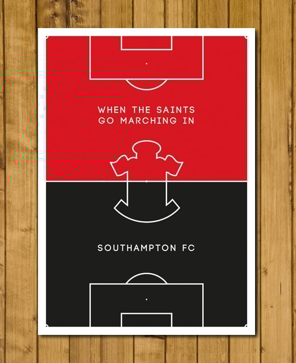 The ‘Pitch Perfect’ poster collection celebrates world famous football club colours and mottos. This edition depicts Southampton FC.