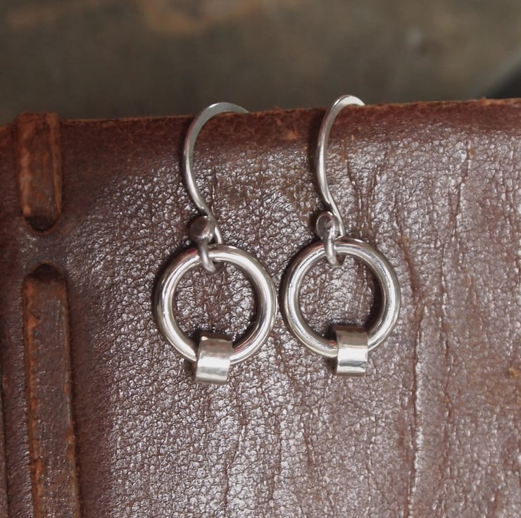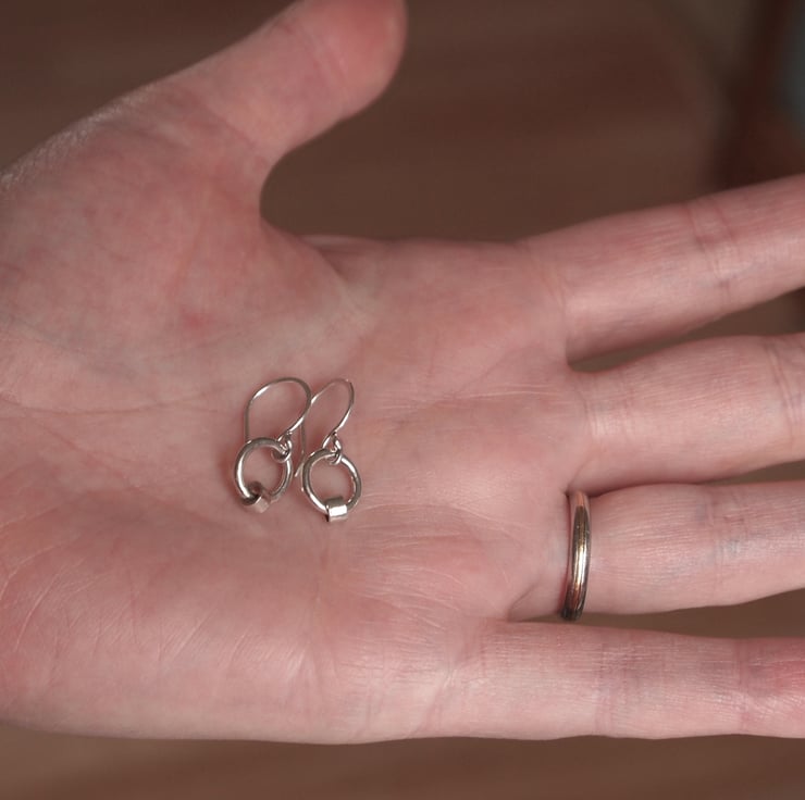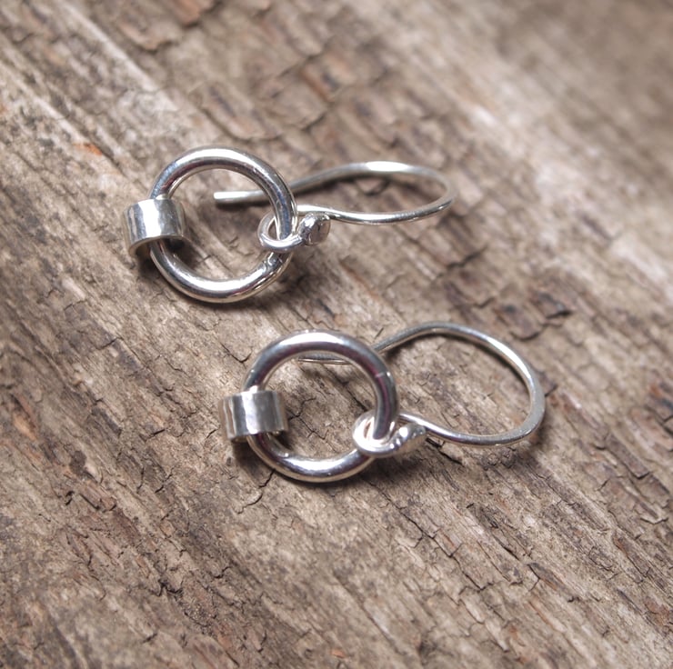 Sterling silver ring hoop earrings, small dangle earrings ideal for everyday wear.