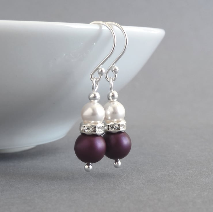Plum Pearl Drop Earrings - Aubergine Bridesmaid Gifts - Purple Wedding Jewellery