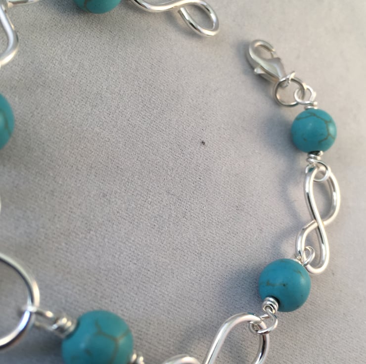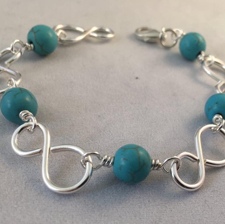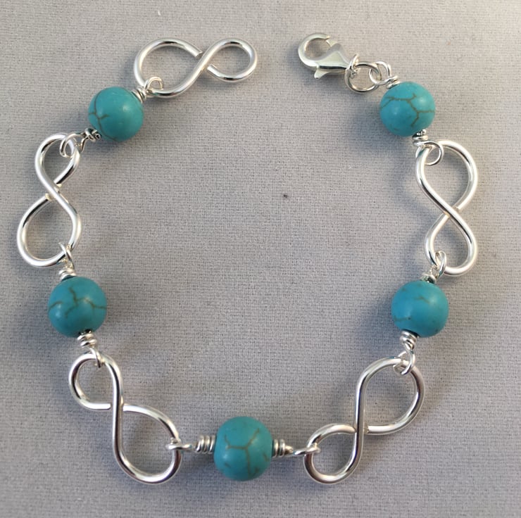 Sterling silver infinity links with reconstituted blue turquoise beads.