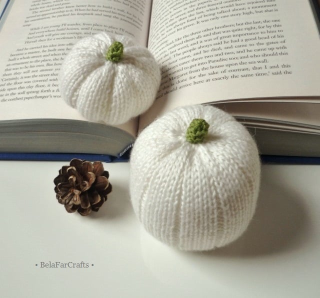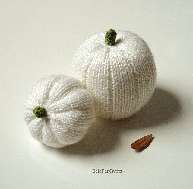 - I hand knit these pumpkins using fine wool blend yarn in white.