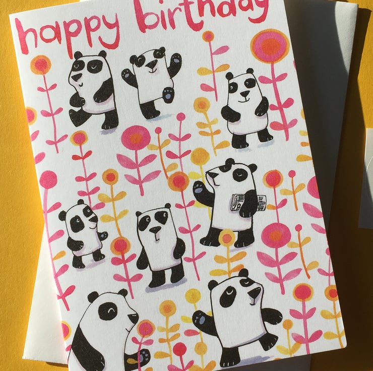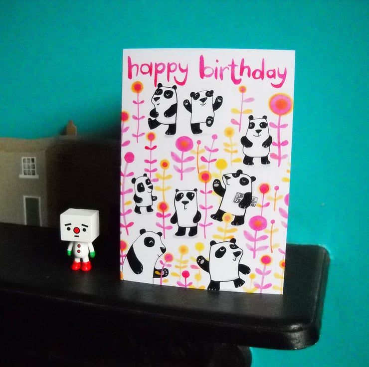 Part of a panda range ! I have another version of this without the Happy Birthday at the top and a tea towel and prints with the same design- see other listings.