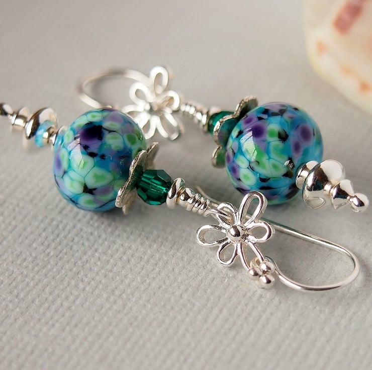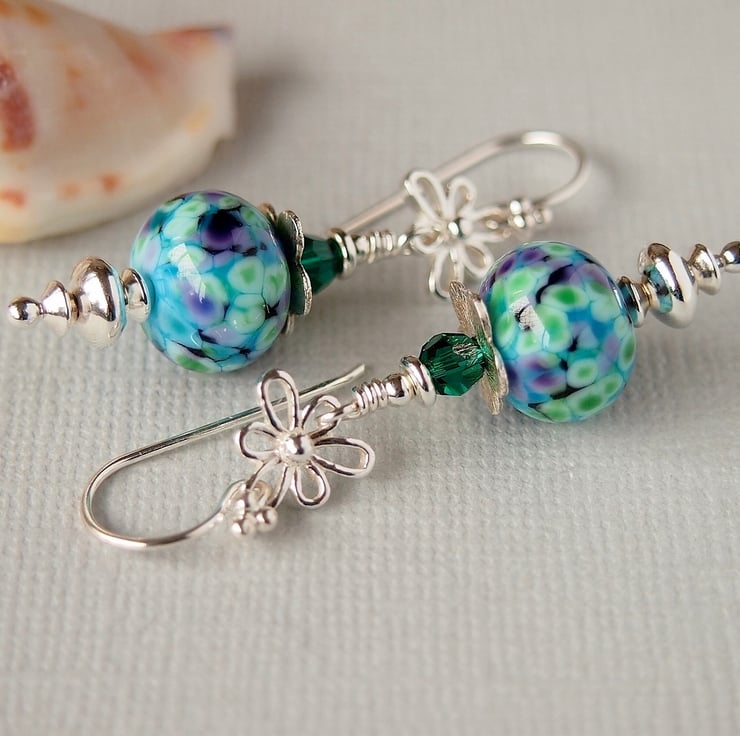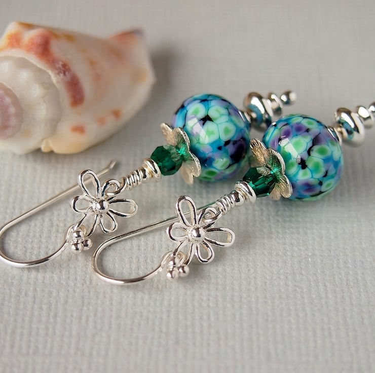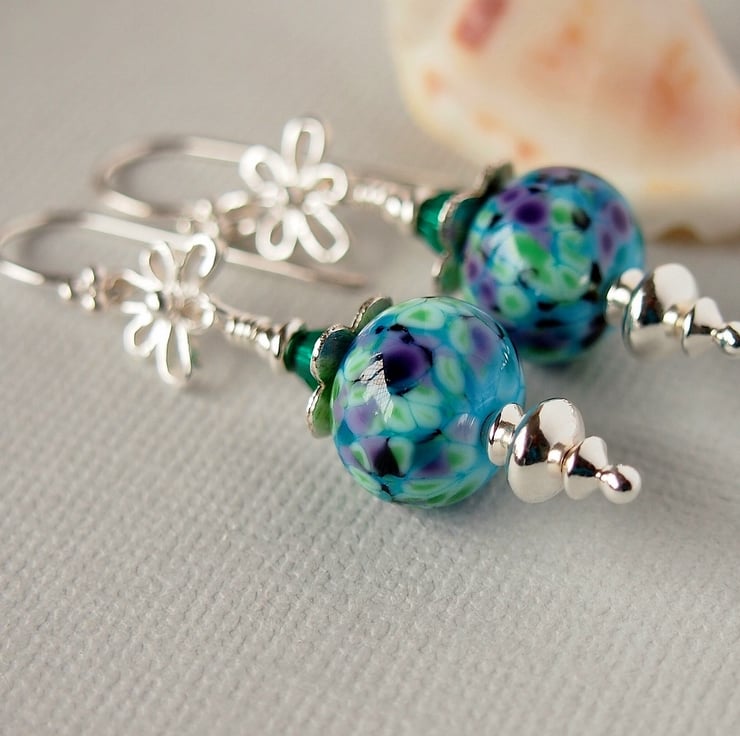 Pretty earrings featuring artisan lampwork glass beads with sterling silver.
