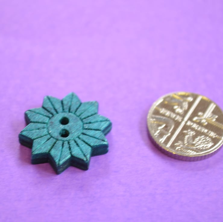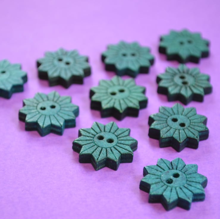 Colourful wooden star flower shaped buttons.