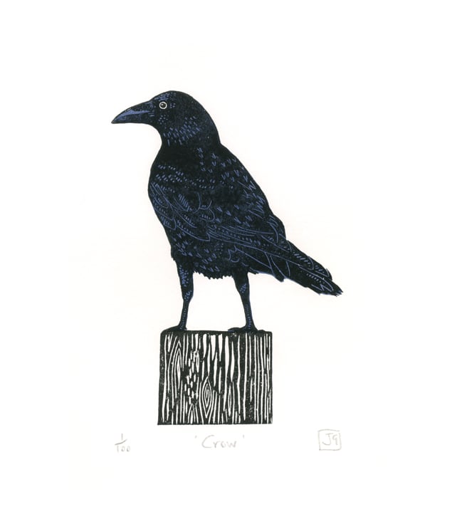 Following on from my 'Blackbird' and 'Jackdaw' prints, here is the next in my series of black bird prints (I'd use the term 'corvid', but a Blackbird isn't technically one!). I love the challenge of working out the detail on their almost-silhouetted form.