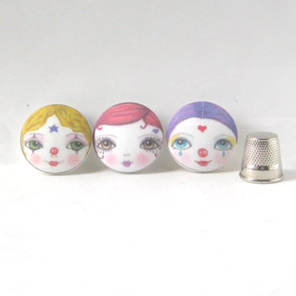THIS LISTING IS FOR 3 DOLL FACE BUTTONS ONLY