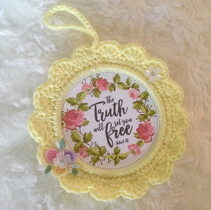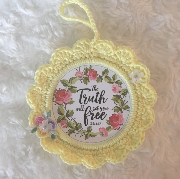 Hand crocheted Bible Scripture frame using 100% cotton yarn. All beautifully embellished.