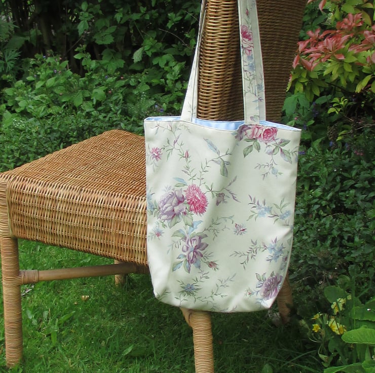 This is very a versatile tote bag - ideal for use as a shopping bag but pretty enough to be used as a handbag. It can be easily folded and placed inside a handbag which is convenient for avoiding the carrier bag charge. With its pretty floral fabric it would make a lovely gift, perhaps for a keen gardener.