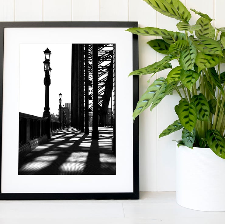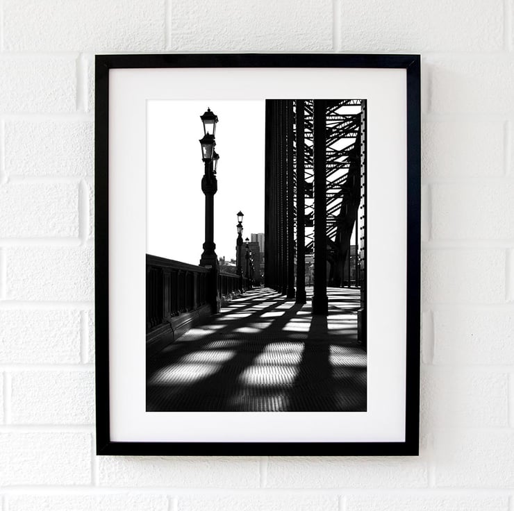Our Tyne Bridge print is a popular choice with locals in the North East of England. This high key fine art photography print of the long shadows at the Tyne Bridge, over the river Tyne, in Newcastle upon Tyne, makes a gorgeous addition to both modern and traditional interior schemes. This Tyne Bridge wall art print come beautifully packaged and is archival quality making it a fabulous gift idea.