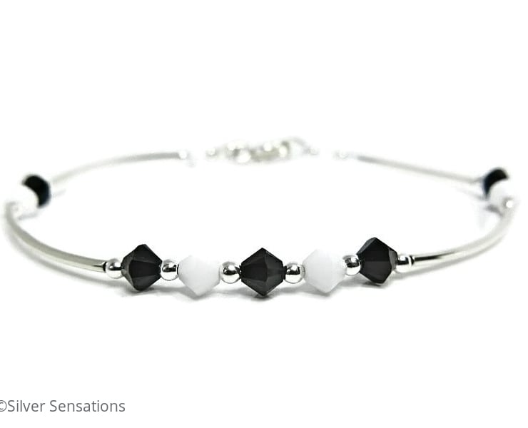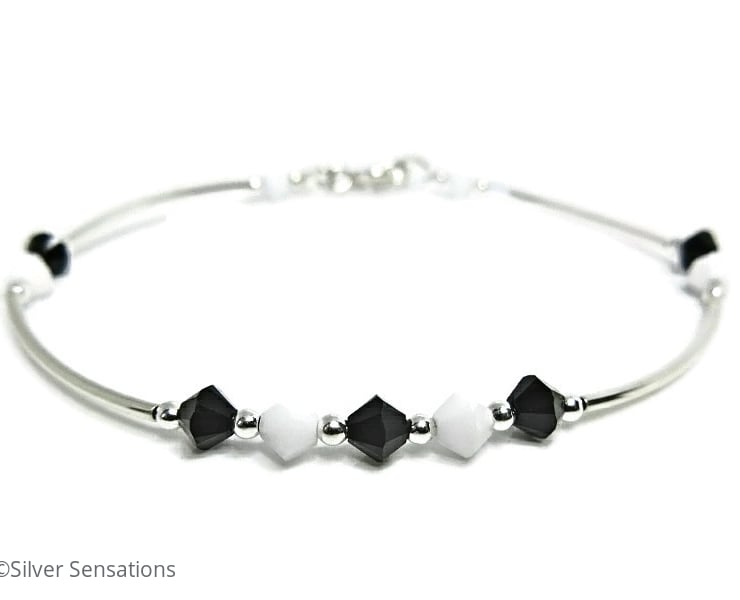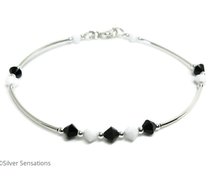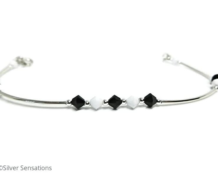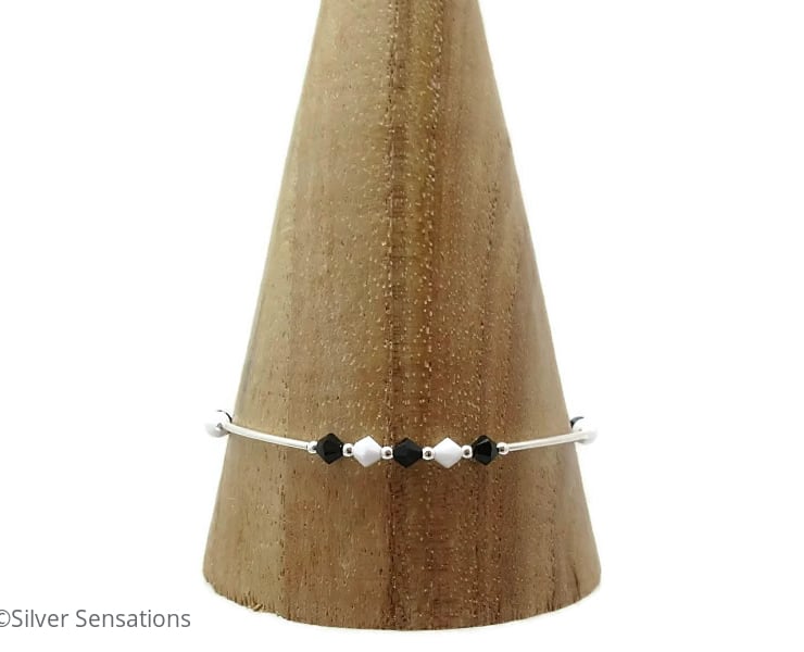 A pretty handmade monochrome bangle bracelet with black & white Swarovski Crystals.