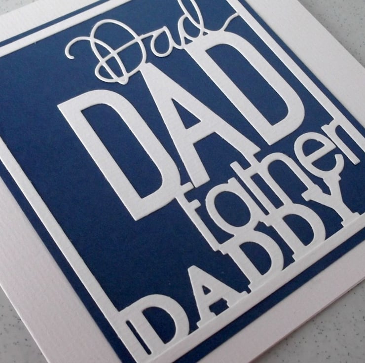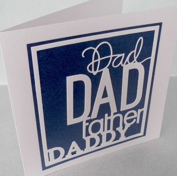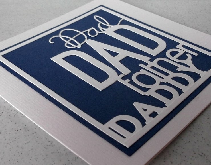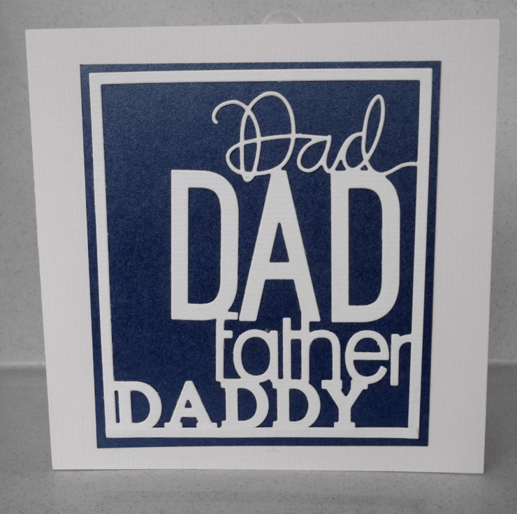 Featuring a die-cut greeting reading "Dad, father, Daddy" in white mounted on a panel of navy pearlised card. Simple but lovely!
