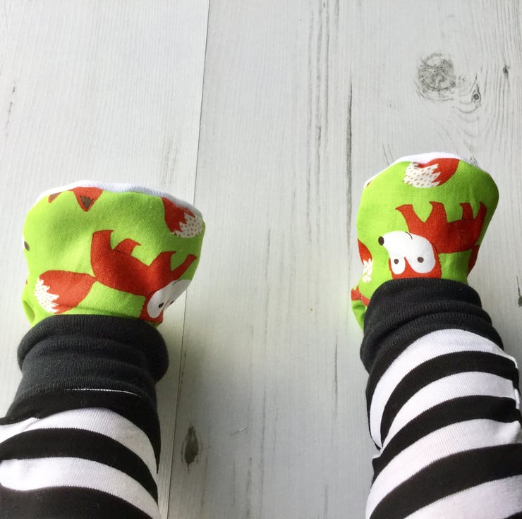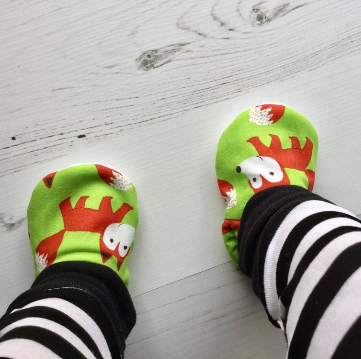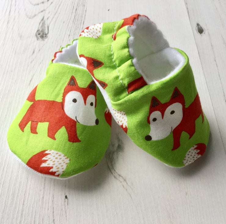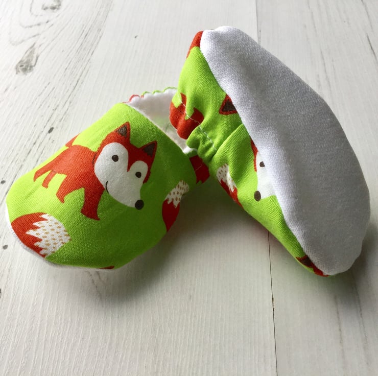 Handcrafted Shoes in this cute FOX print on a bright green fabric.