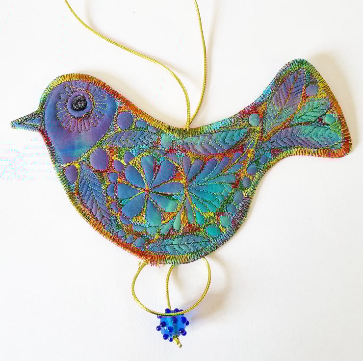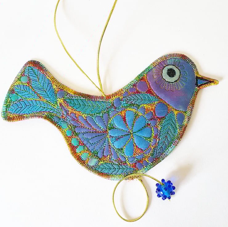 This is a handmade, machine stitched fabric Bird Hanging decoration
