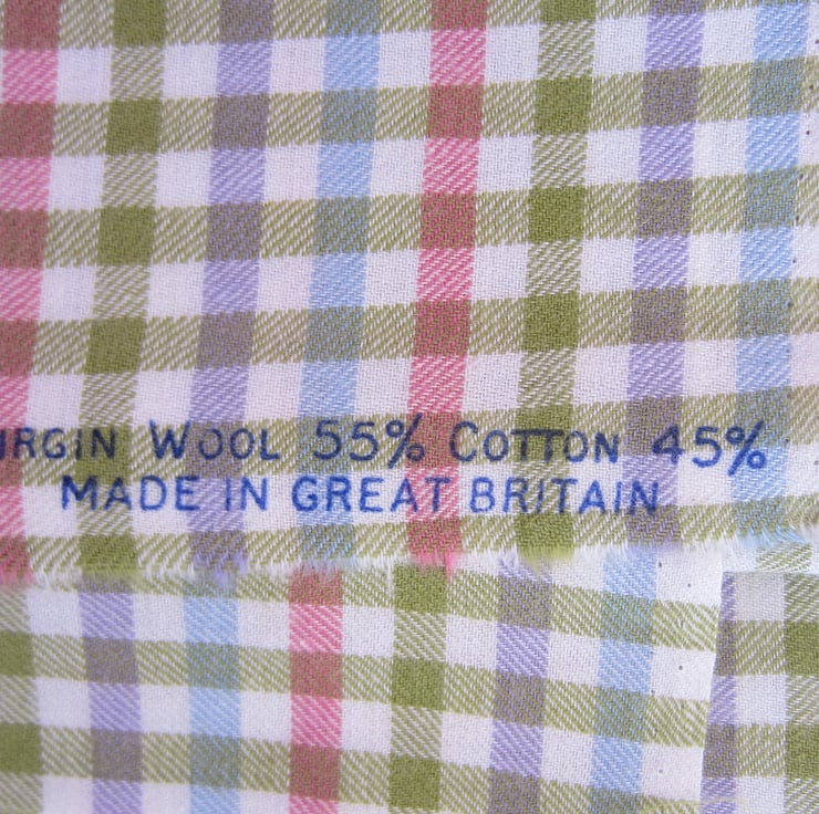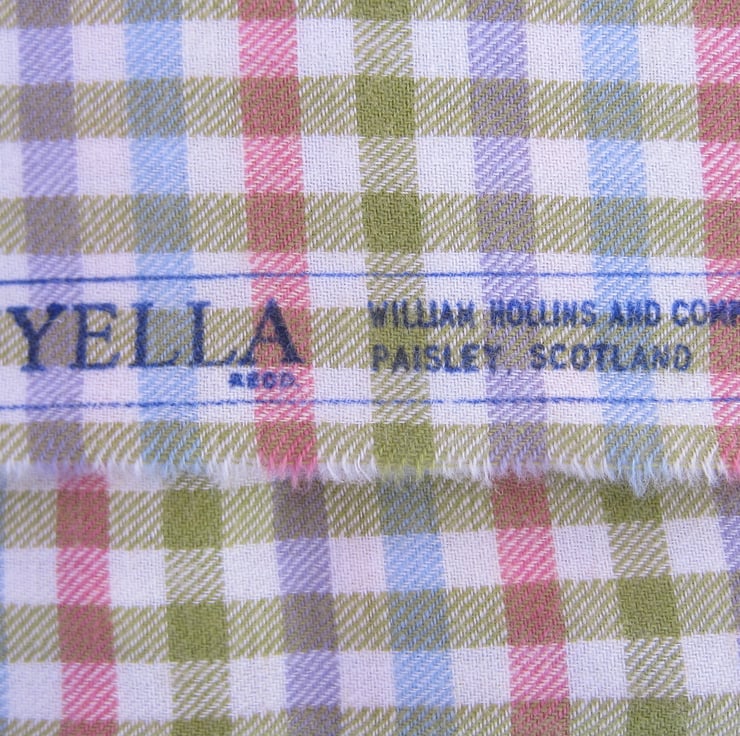 The edge is marked Viyella, William Hollins and Company Ltd., Paisley, Scotland. Virgin Wool 55% Cotton 45%. Made in Great Britain.