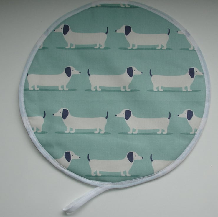 Dachshund / Sausage Dog / Daschound / Daschund Design on a Duck Egg Blue Background.