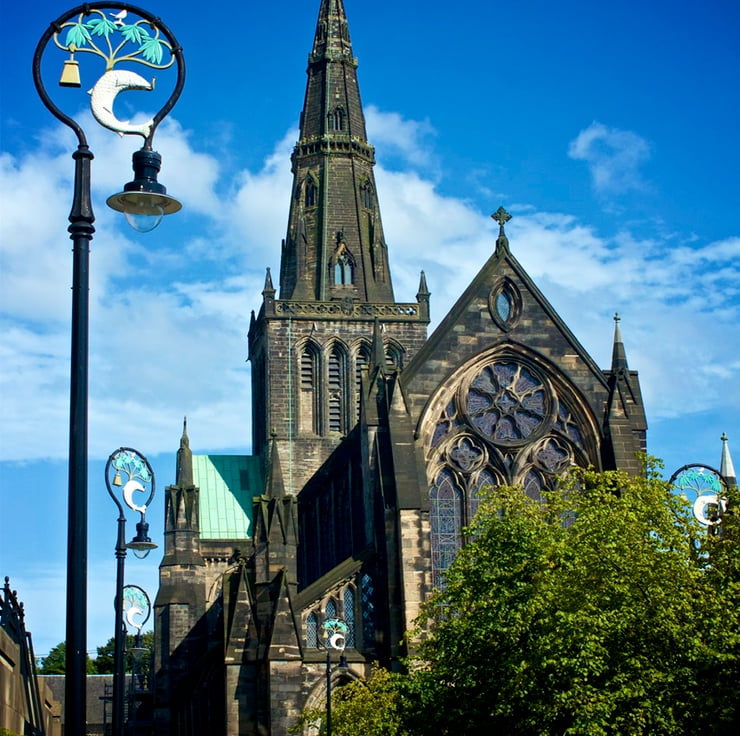 An overlooked gem of the city, Glasgow Cathedral in the east end is a wonderful example of Scottish gothic architecture. My photograph also includes the Glasgow Coat of Arms, pictured here at the top of a lamp post