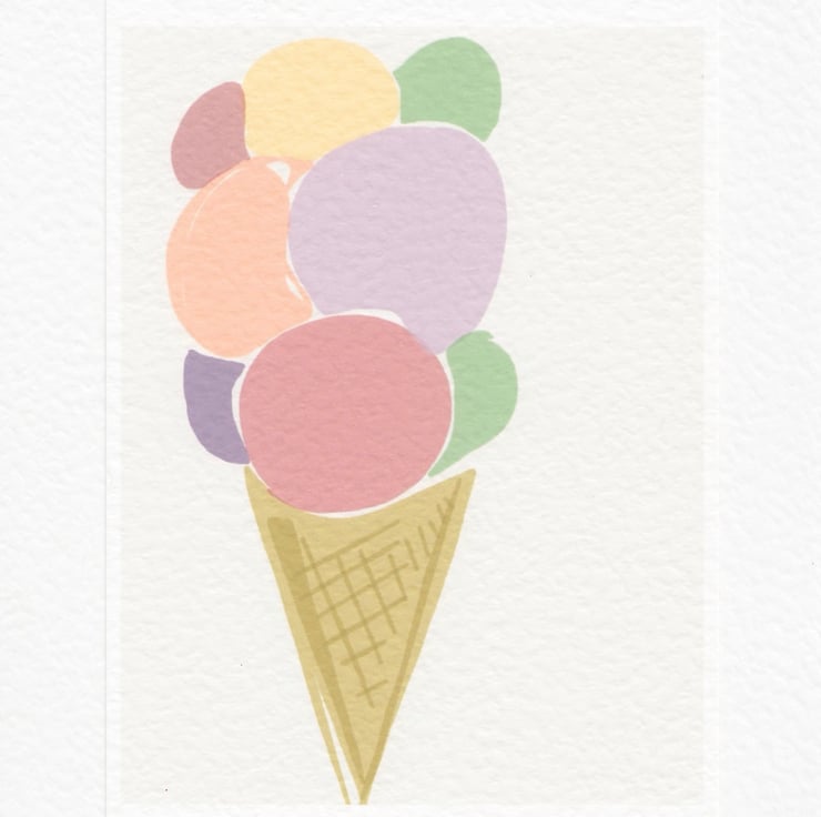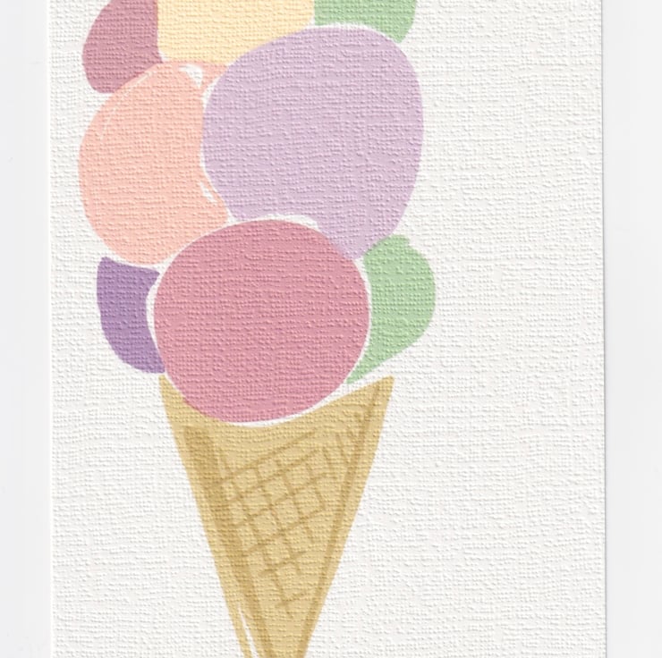 Printed from an original illustration of a ice cream cone in summer pastel colours.
