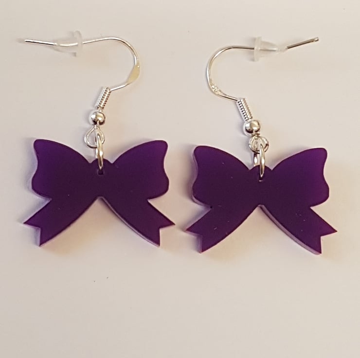 Cute little bow earrings, available in a choice of lovely colours, please see out other listings. They have such a vintage charm. Charms are approx 2.5cm in across. This listing is for one pair of purple earrings.