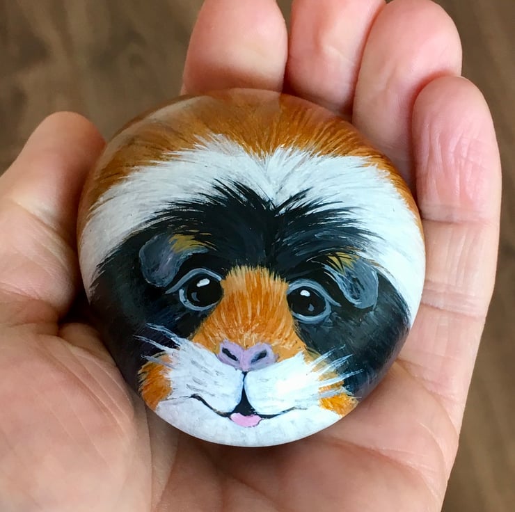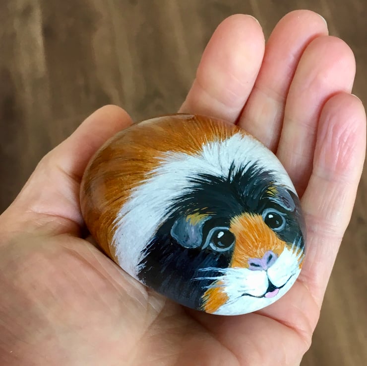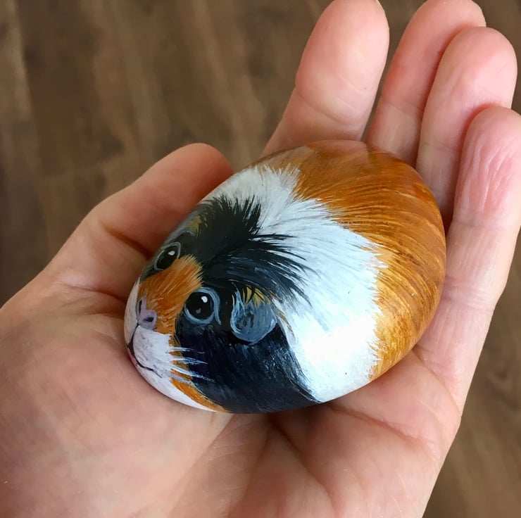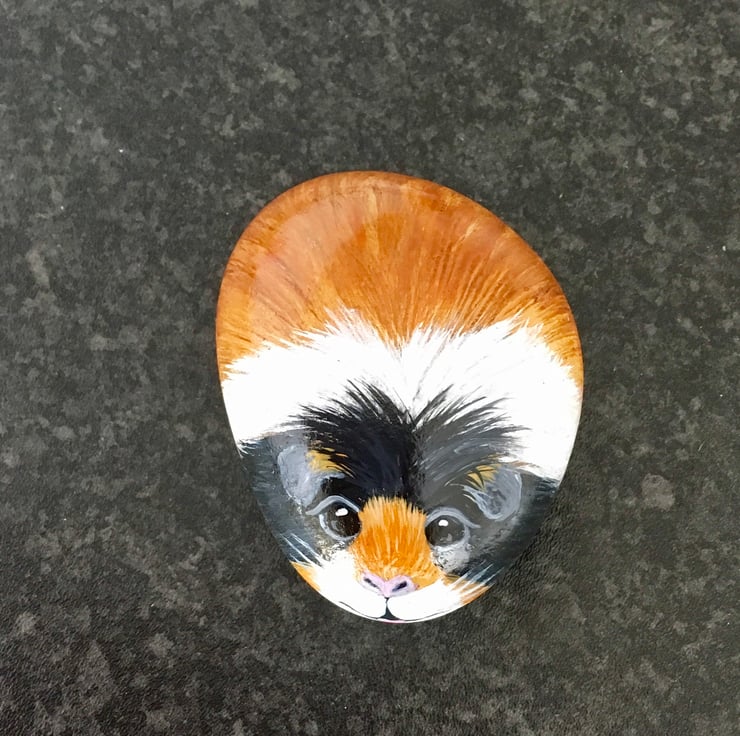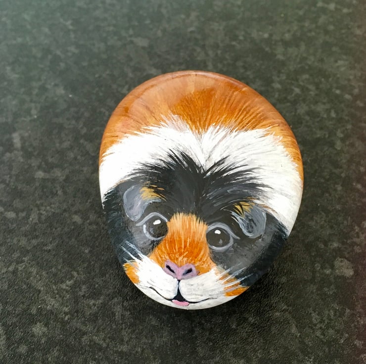 This little guinea pig has been hand painted by myself onto a smooth stone and glazed for a glossy protective finish