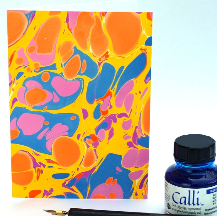 This really bright and colourful marbled note card was made in the Lincolnshire wolds and features a stone pattern (although unlike any stone I've ever seen!).