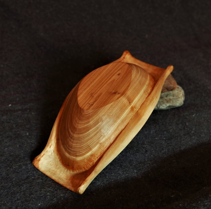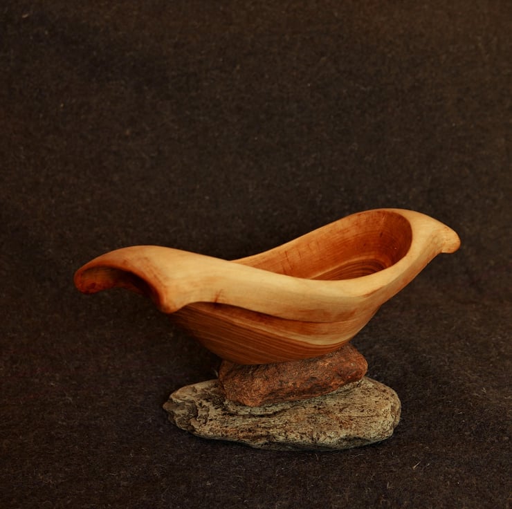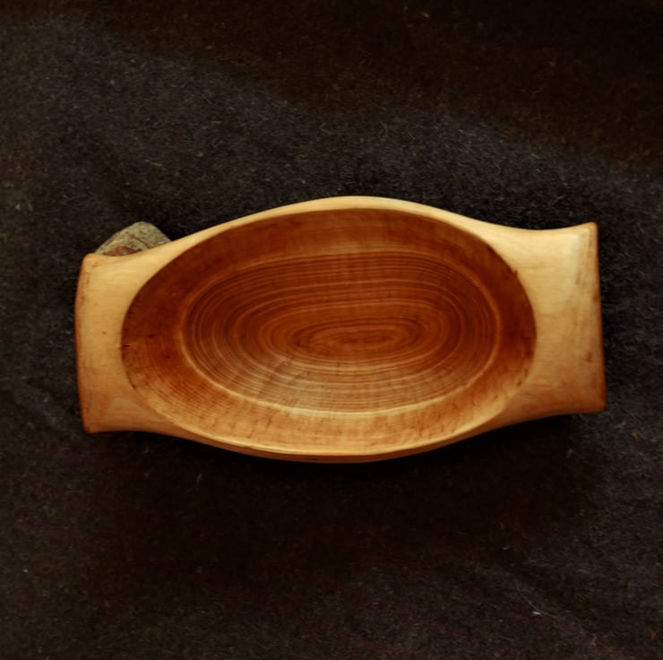 This bowl has been carved from the trunk of a Welsh cherry tree in the Scandinavian style.