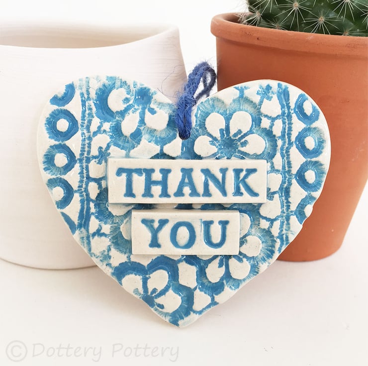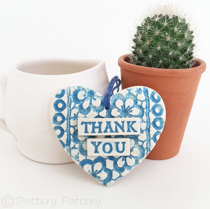 This little heart is made from white earthenware clay and decorated with a bright floral design. It has then been fired once, glazed and fired again.