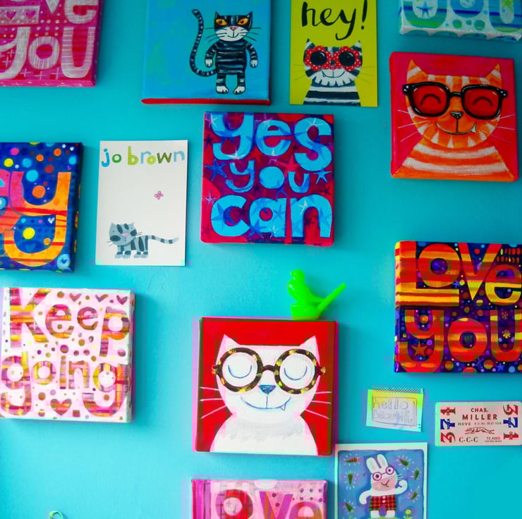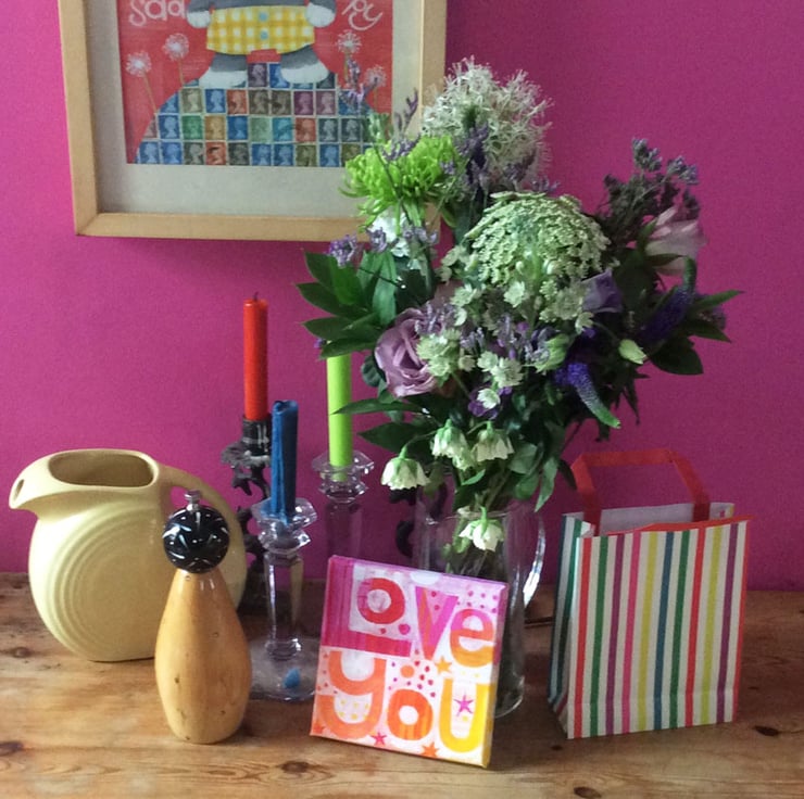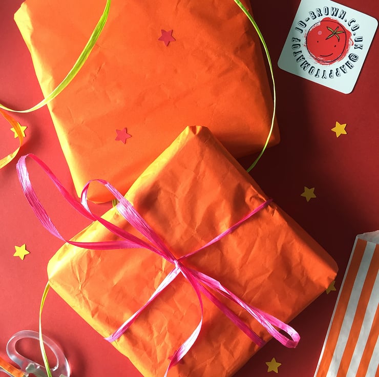 Happy colourful gifts by Jo Brown, can be sent direct to recipient, with a handwritten note.