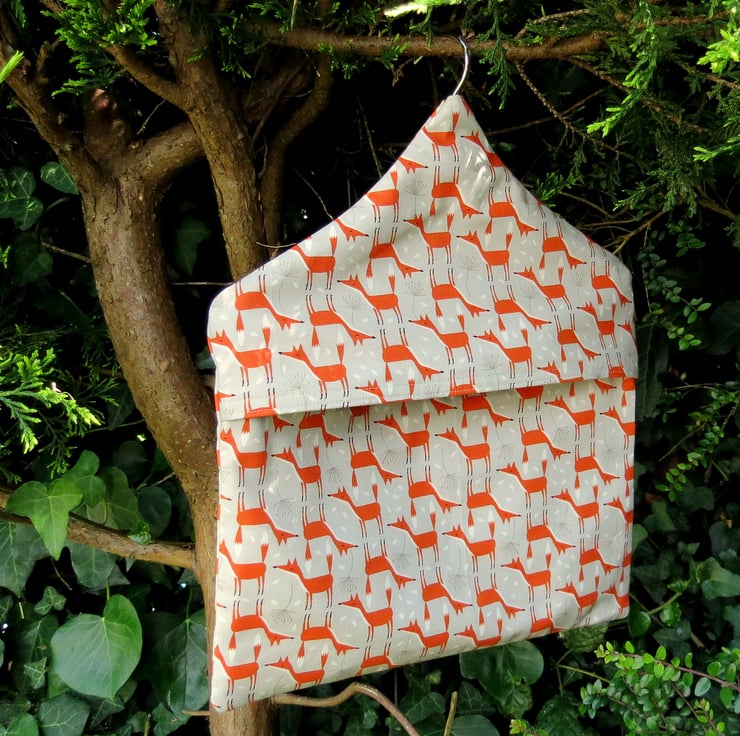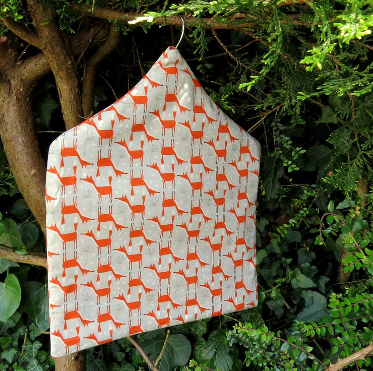 It is lined with a spotty cotton, and contains a sturdy wooden coat hanger.