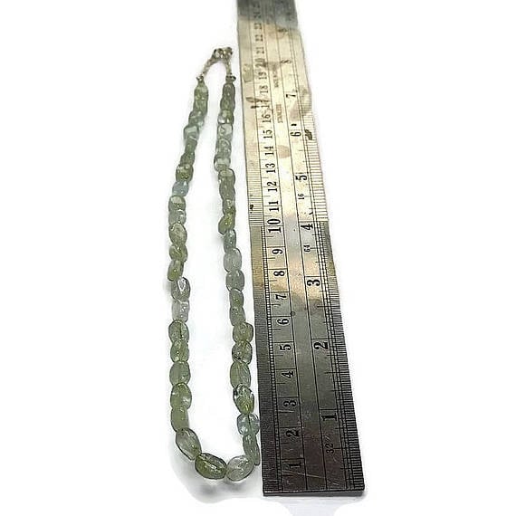 The beads have sterling silver chains on either side and the necklace measures approx 44.5cm long and fastens with a sterling silver bolt clasp