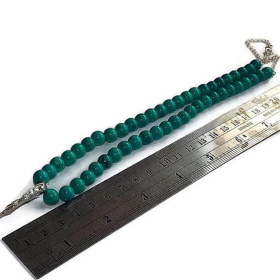 The beads measure 8mm in diameter and the necklace measures approximately 54cm long, it fastens with a sterling silver bolt clasp