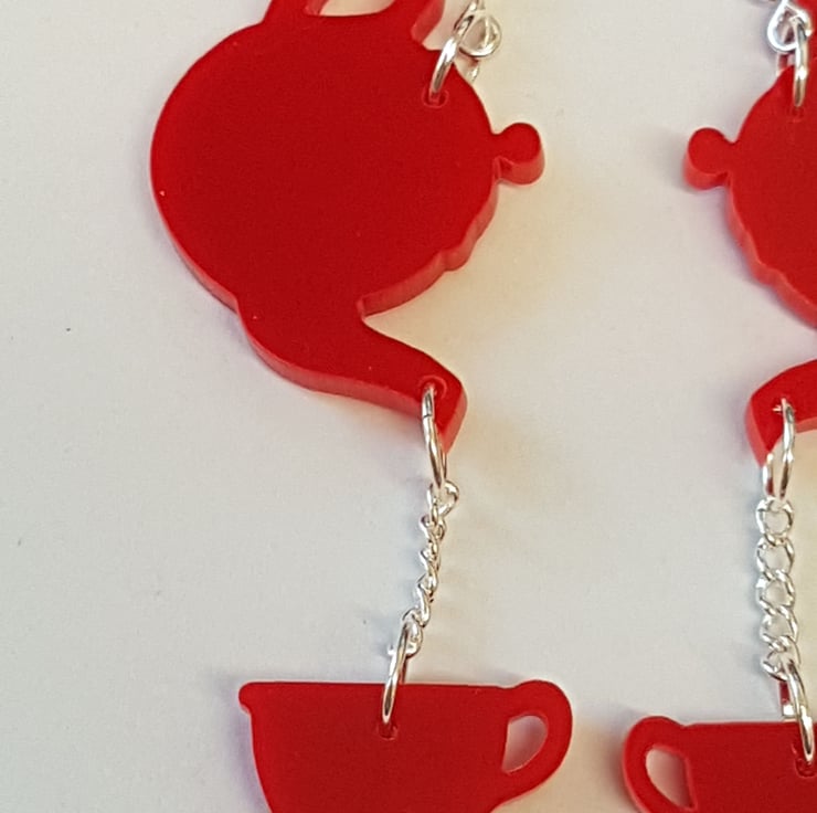 Love a good cuppa of just like that vintage look? Well if so these earrings are perfect for you!. A beautifully shaped teapot with a lovely little teacup dangling from the spout gives the illusion of pouring a cup of tea, such a charming pair. The teapot is approx 3.5cm wide and the teacup is approx 2cm wide.