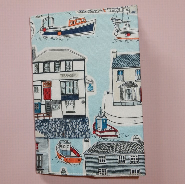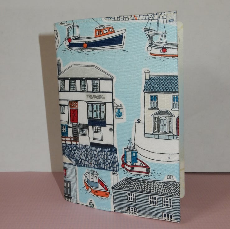 This passport cover is made from fabric featuring boats, and buildings including a pub. It fits a standard UK passport, and it is lined in plain white fabric, with a layer of interfacing to help protect your passport. A great travel accessory, or gift.