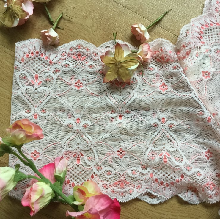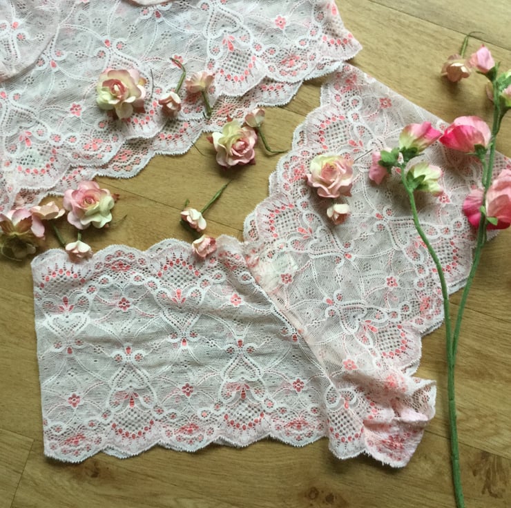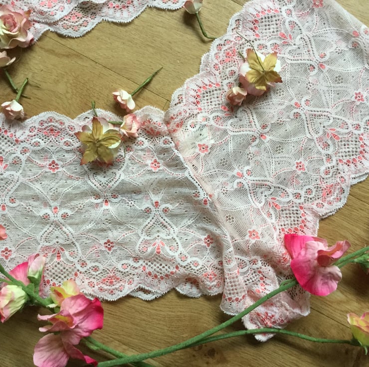 Custom made from hand dyed stretch lace, in a wonderful two tone cream with peach detail lace.