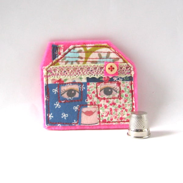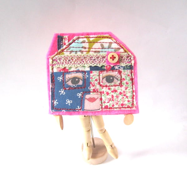 I was inspired by "Alice in Wonderland" imagery when designing this cute little house textile brooch. It is an unusual little brooch and would suit those looking for something a little different.