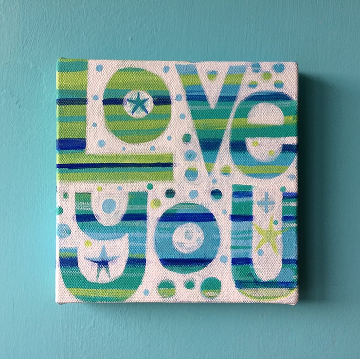 another of my signature Love You painting, this time in crisp spring like greens great for decorating your home or cute gift for loved one or friend
