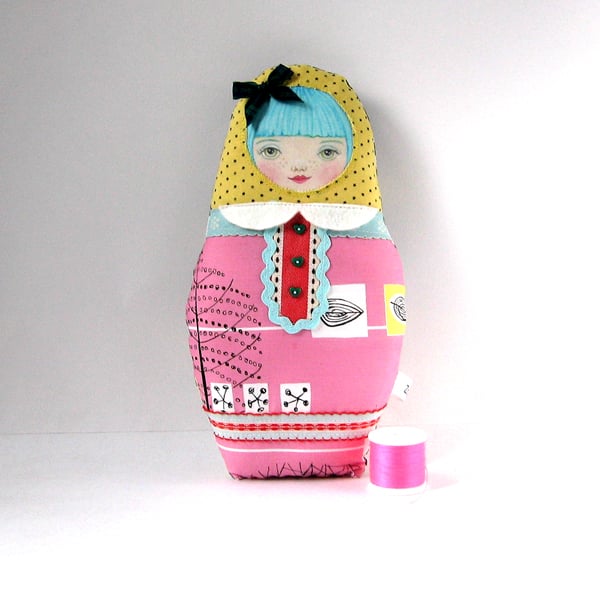 If you would like to make a doll similar to this one, I sell a PDF Matryoshka doll pattern and also fabric doll faces in my Folksy shop (please see PDF sewing pattern in last image).