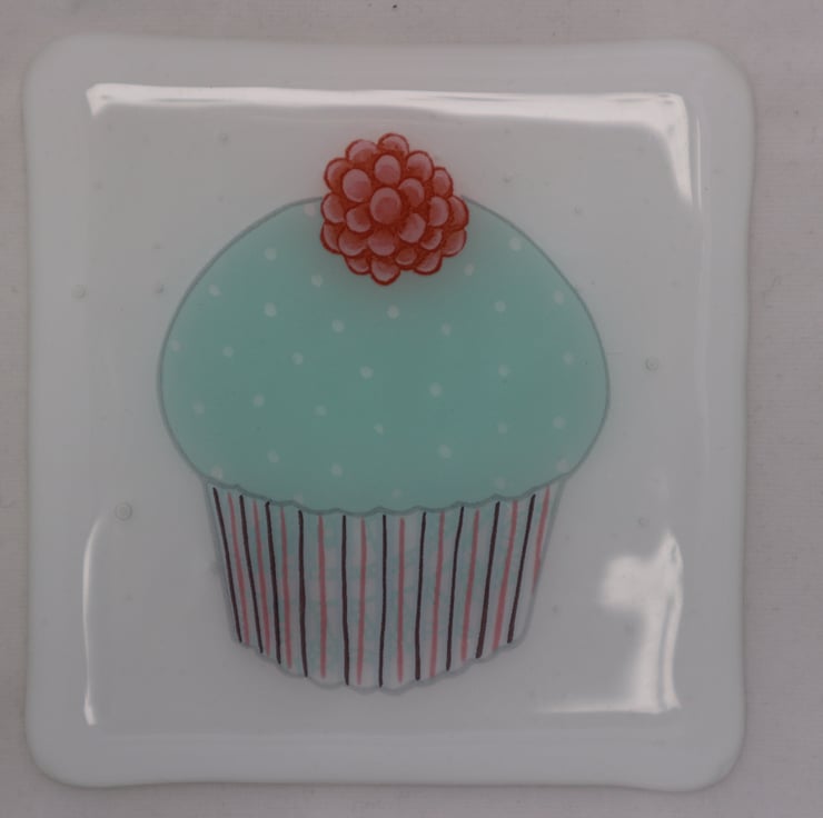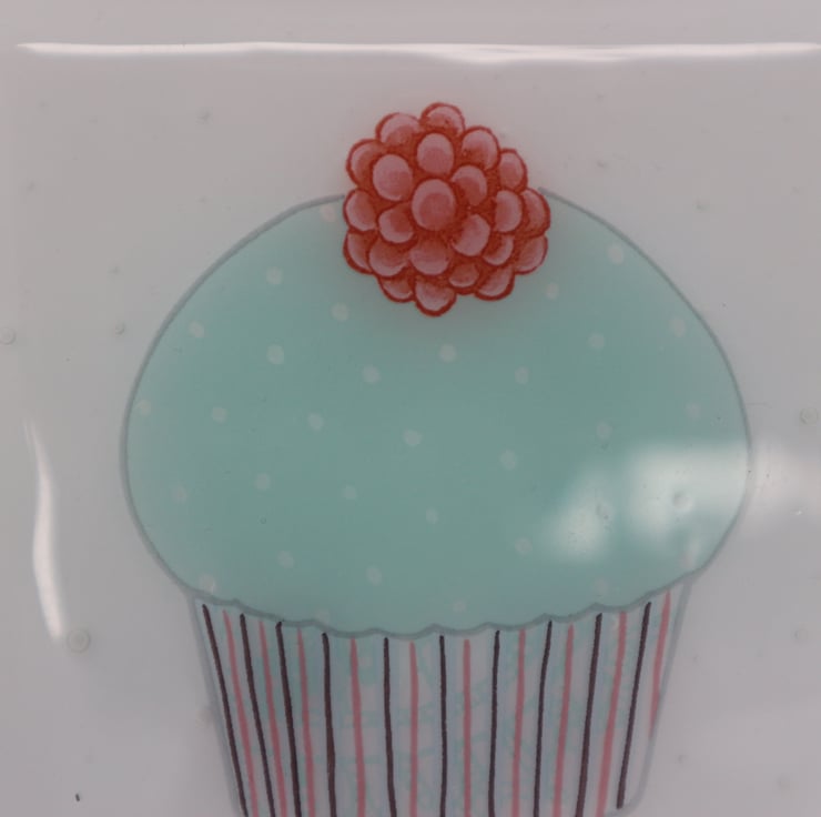 This coaster has a beautiful cupcake design on white glass. It has been fully annealed to make it strong and is suitable for use with hot tea or coffee cups but not pans straight from the oven. It would make a great gift, secret santa or stocking filler.