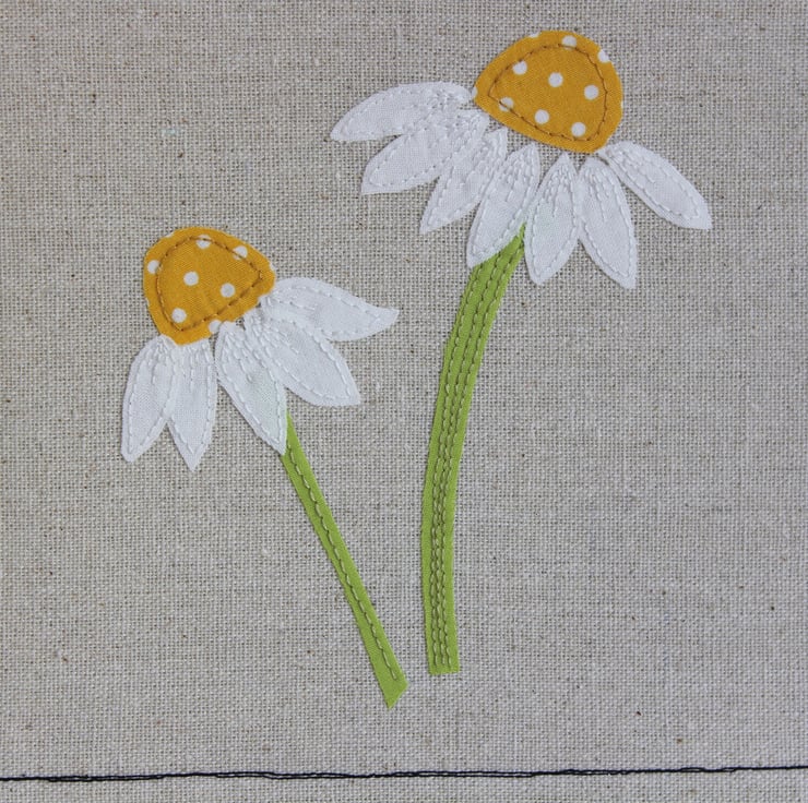 This original textile art picture, designed by myself, features a pair of lovely summer dasies.