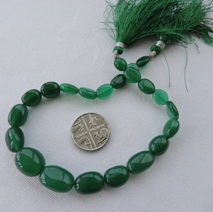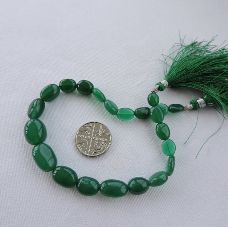 A strand of green Onyx gemstone beads. These beads were bequeathed to me and are being sold for charity.